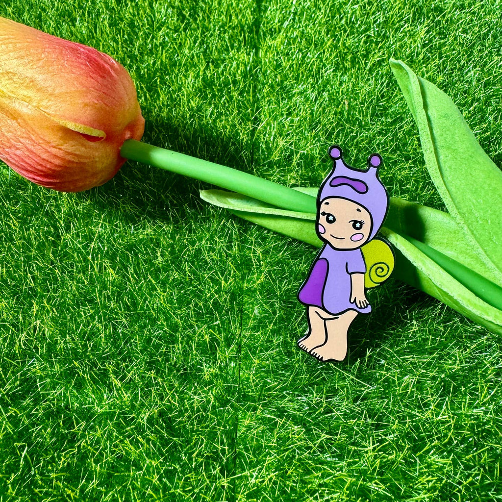 Shelly snail can now go on your shirts, backpacks, and much more! It comes finished with 2 silicone backs and a Not Picasso branded display card. Designed in Louisville, Kentucky