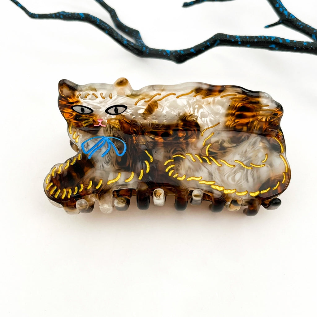 Crafted from premium acetate, the clip features a smooth glossy finish, lightweight comfort, and a secure grip for everyday styling. Its artistic cat motif makes it a chic statement piece that appeals to fashion-forward customers and cat lovers alike.