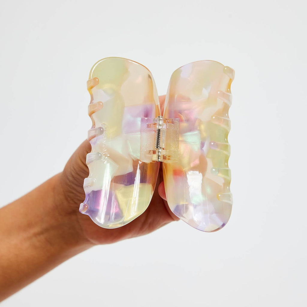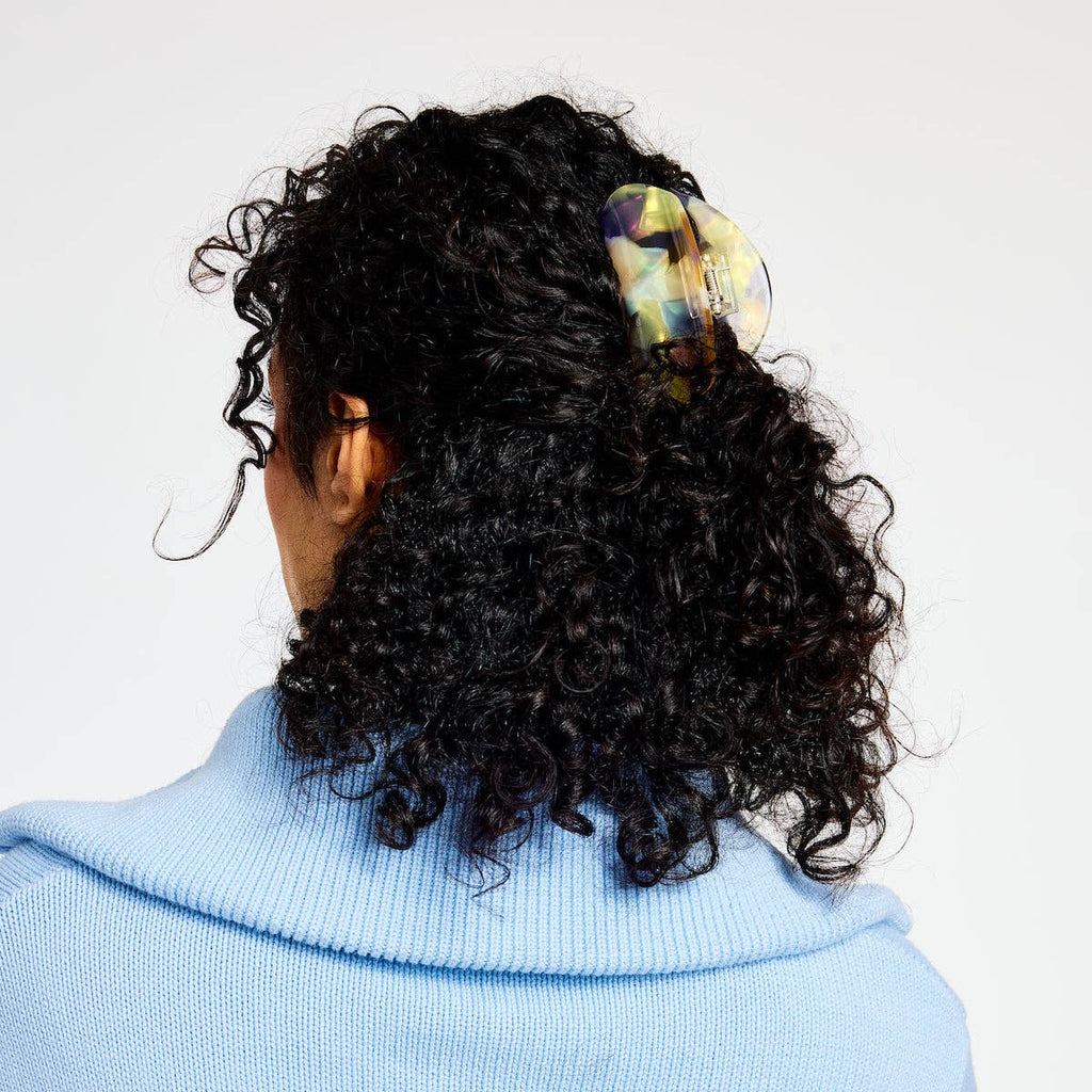 This medium sized hair claw is super versatile and works for all hair types and textures. Made from high quality acetate; a durable, plant based bio-plastic. Metal hardware is lead and nickel-free. Slight variations will appear with pattern, color and form due to the handmade nature of the product.