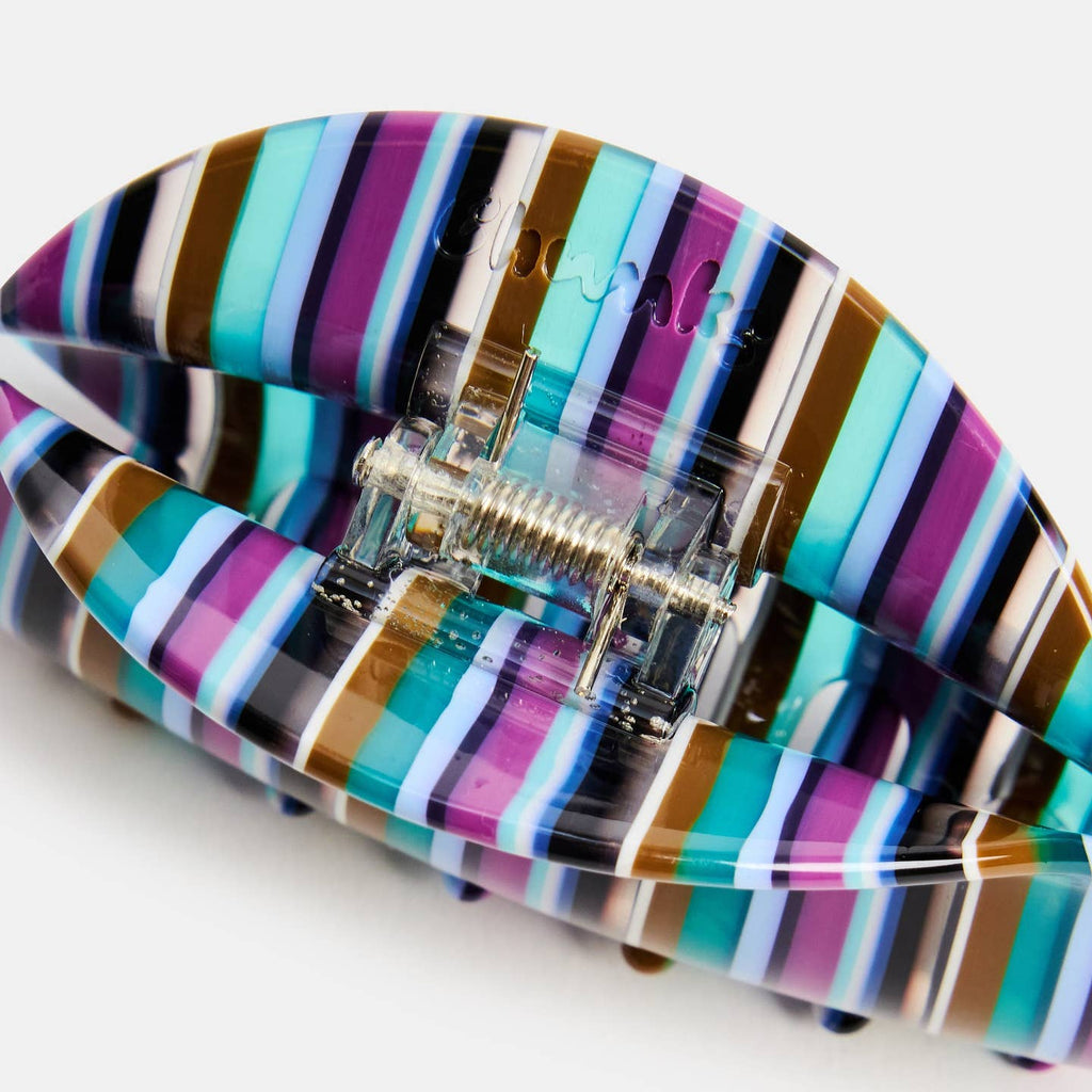 This medium sized hair claw is super versatile and works for all hair types and textures. Made from high quality acetate; a durable, plant based bio-plastic. Metal hardware is lead and nickel-free. Slight variations will appear with pattern, color and form due to the handmade nature of the product.