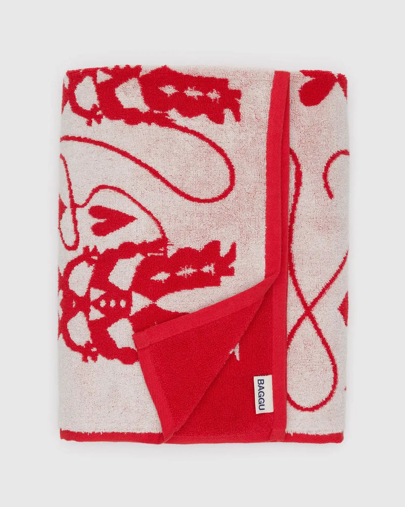 - A soft, reversible, organic cotton bath towel