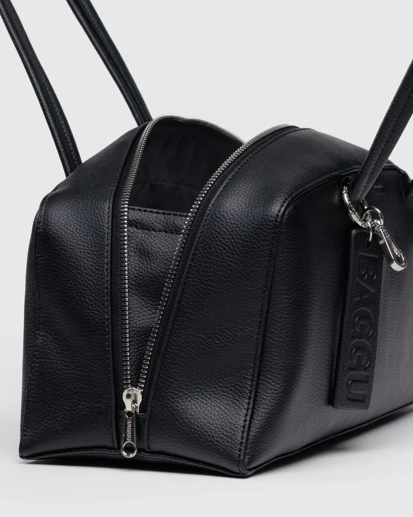 Recycled Leather Bowler Bag - Black