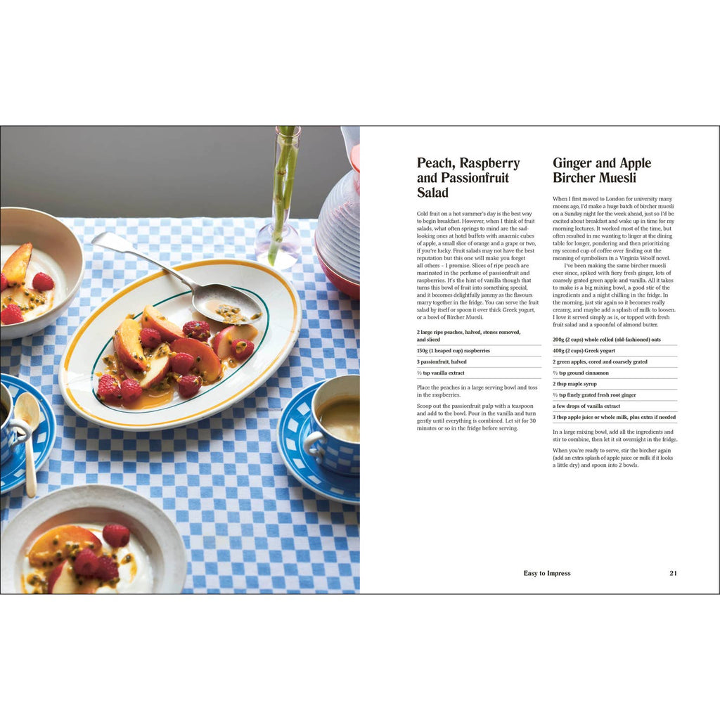 Table for Two is food writer Bre Graham’s first cookbook, showcasing recipes to cook for the people you love. Food to make your heart beat faster, crunchy things, things to risk looking silly eating like spaghetti twirled straight from your fork onto your white t-shirt. The two most romantic meals of all: are breakfast fry-ups and Sunday roasts, which mirror the pace of love as "everything all at once" and "something that takes too long to arrive". Things that look beautiful, super quick to whip up things, alcohol-infused everything.