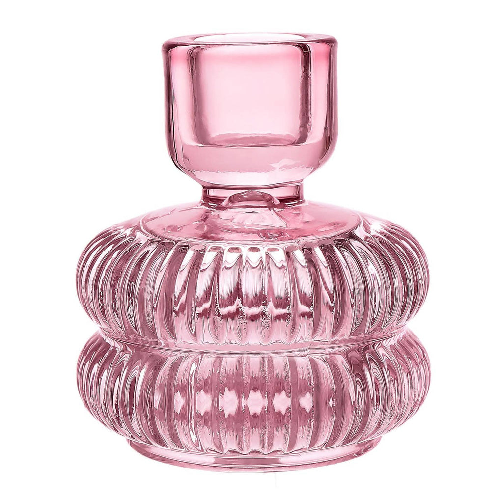 Transparent Crystal Glass Candle Holder - Pink