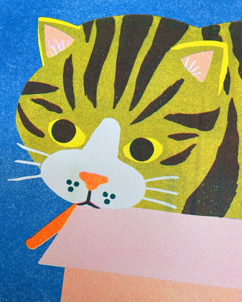 3 colour Risograph print printed in UK using soy based environmentally friendly inks on recycled paper stock