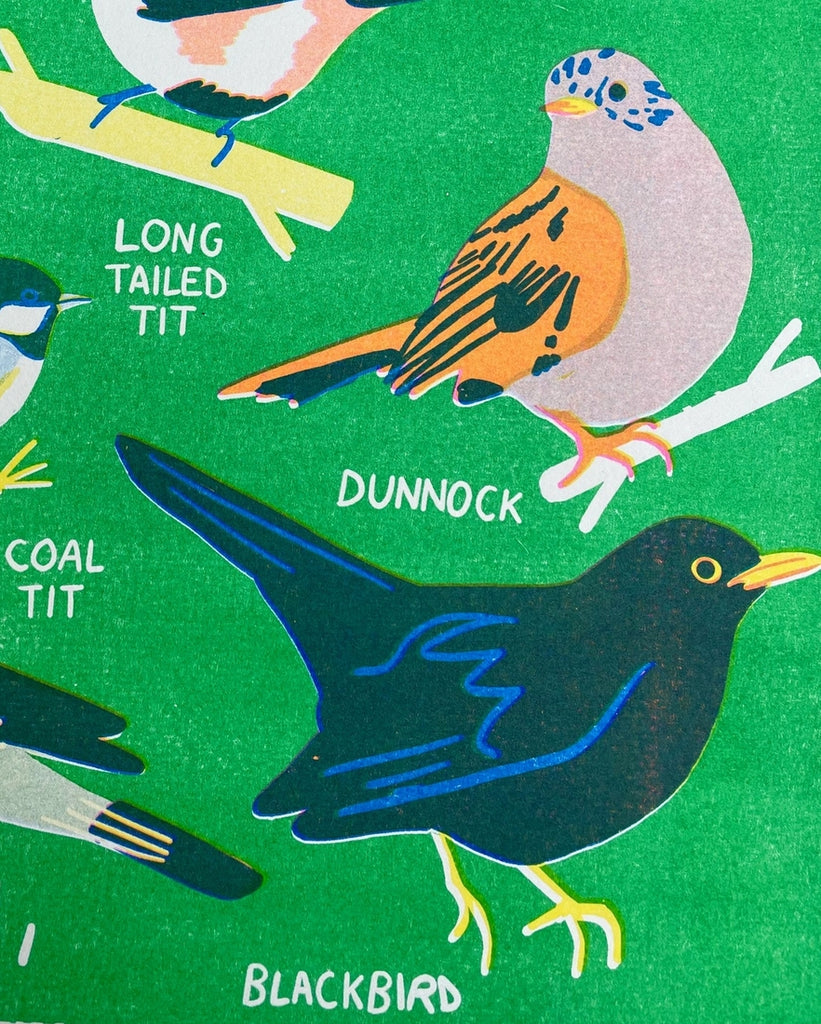 3 colour Risograph print printed in UK using soy based environmentally friendly inks on recycled paper stock