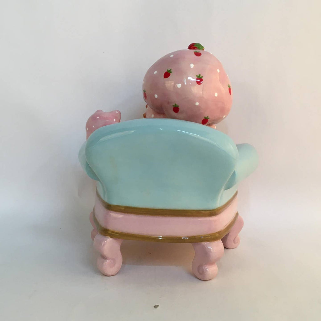 Create a cozy corner of sweetness with the Strawberry Book Nook Figurine. This charming ceramic piece features Strawberry Shortcake curled up in a pastel armchair, happily reading her favorite book with her adorable pink cat snoozing beside her. Soft colors, delicate details, and a glossy finish bring this heartwarming scene to life. 📚🍓✨