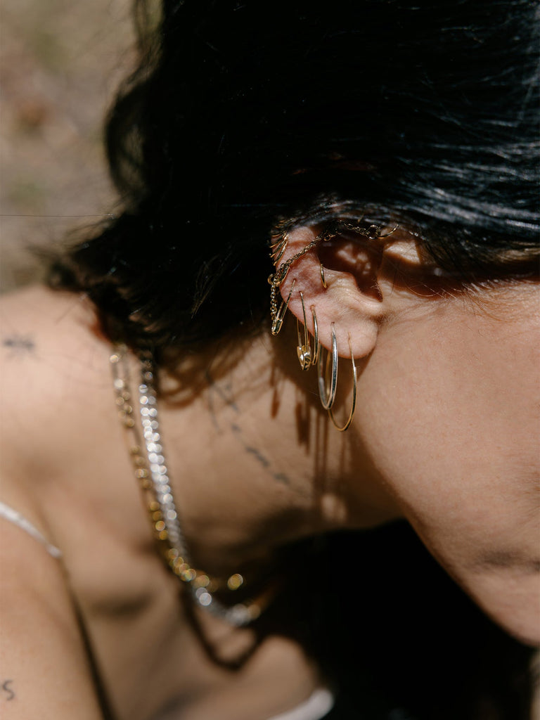 Punk meets polish. The miniature version of our classic Safety Pin Earring pays homage to alternative culture of the ‘80s. Handcrafted from recycled 14Kt gold it’ll make an elevated nod to your inner rebel.