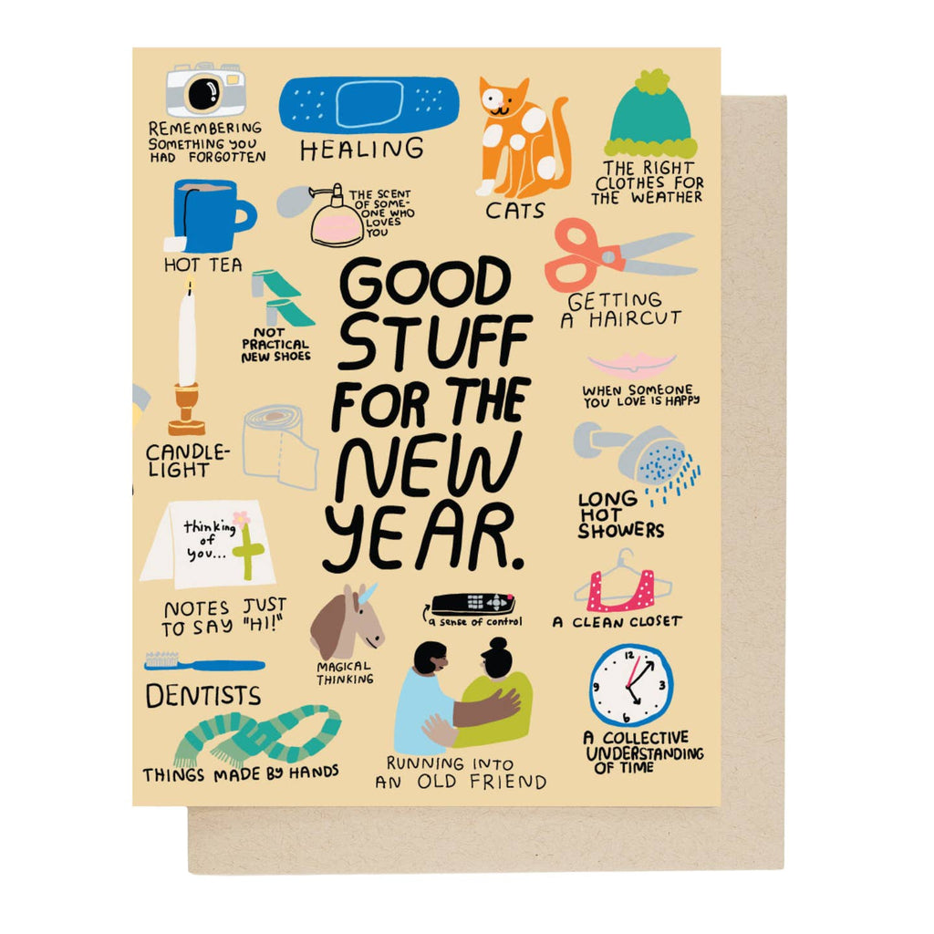 A celebration of all the good little things that carry us through. From haircuts to hot tea, from socks to aliens — this card is a reminder that magic is hiding everywhere.