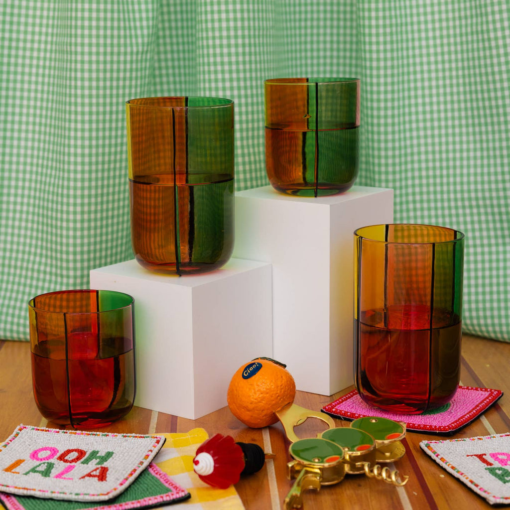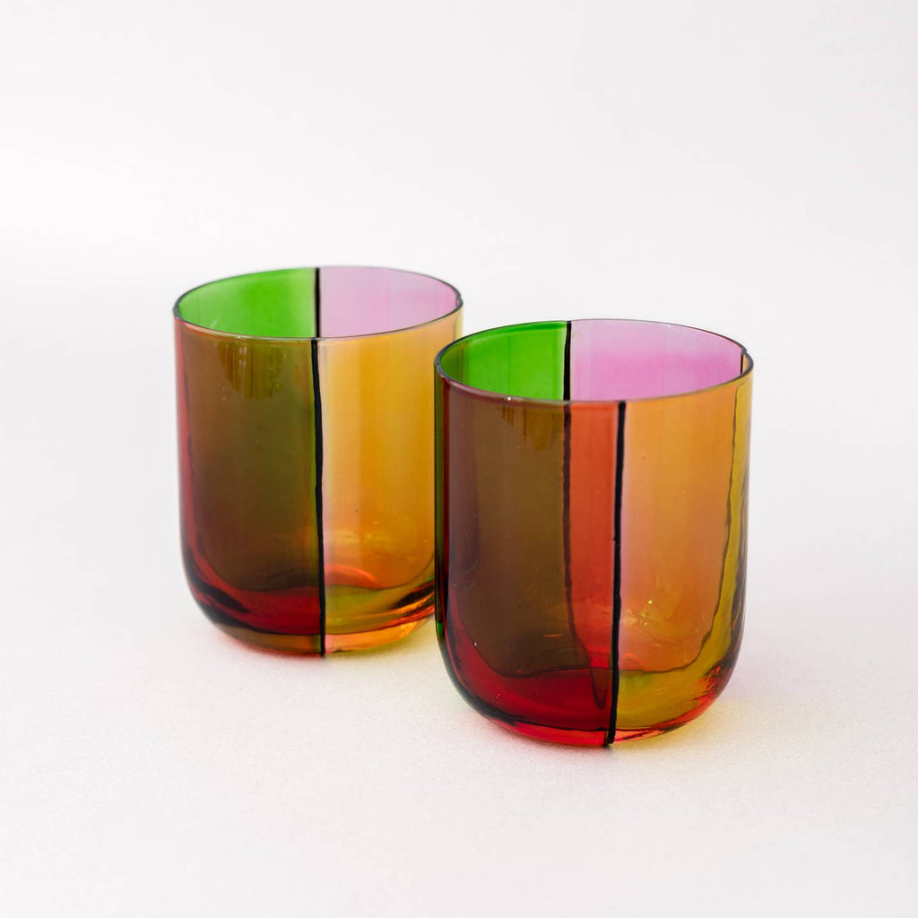 Introducing the stars of your next party. These lowball glasses feature a colorful design and are the perfect place for homemade cocktails.