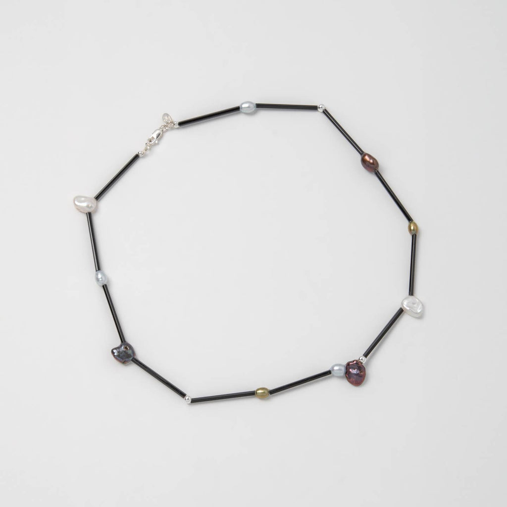 18" Mixed beaded necklace with freshwater pearls and 925 sterling silver beads