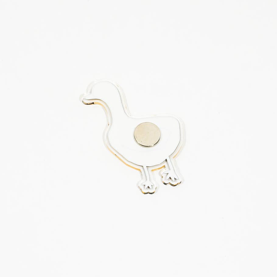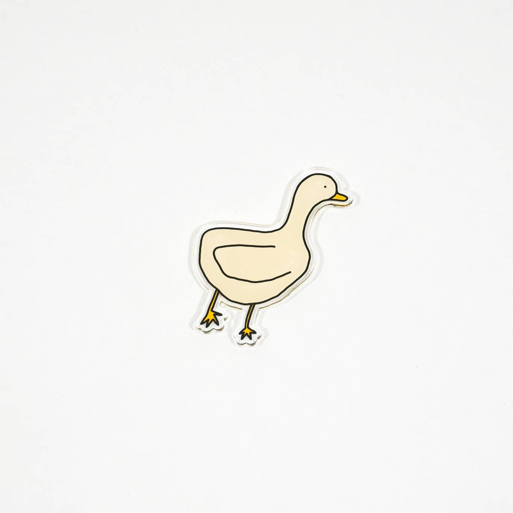 Recycled acrylic refrigerator magnet featuring original illustration of a duck / goose (could be wither)