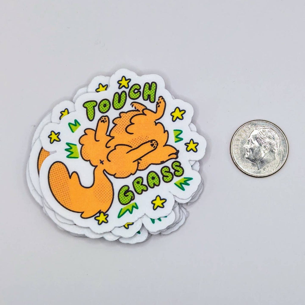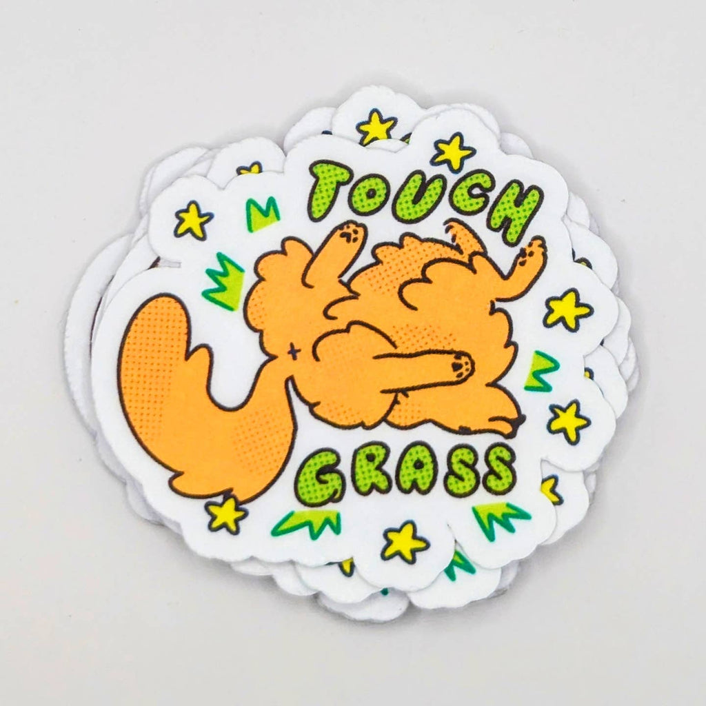 Add a dose of joy to your day with this 2" waterproof vinyl sticker, featuring a fluffy yellow dog gleefully rolling in the grass and the cheeky phrase "touch grass." Built to last, this sticker’s perfect for sprucing up your water bottle, laptop, or any gear that needs a little extra fun. It’s a playful reminder to take a break, embrace the moment, and let loose—just like this carefree pup!