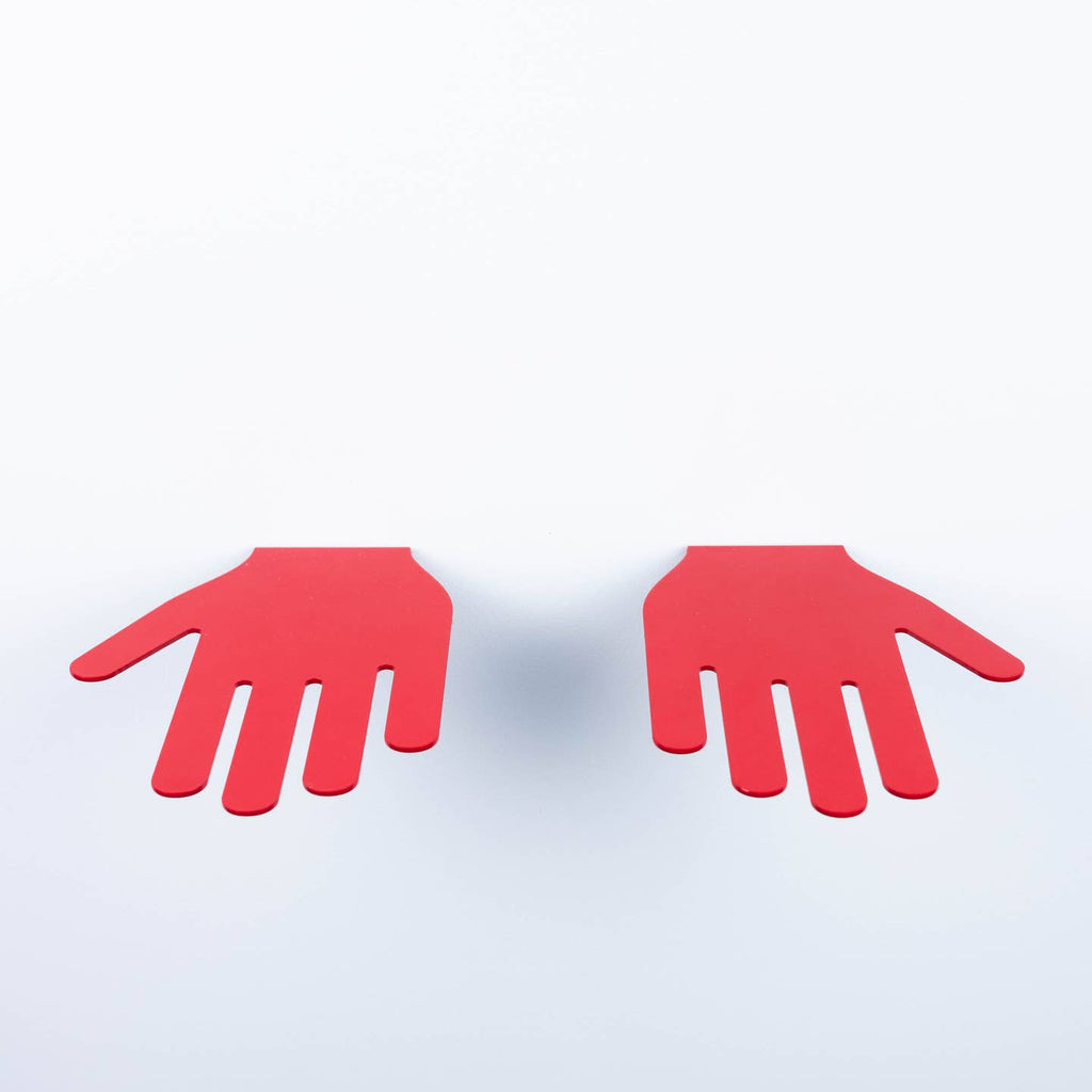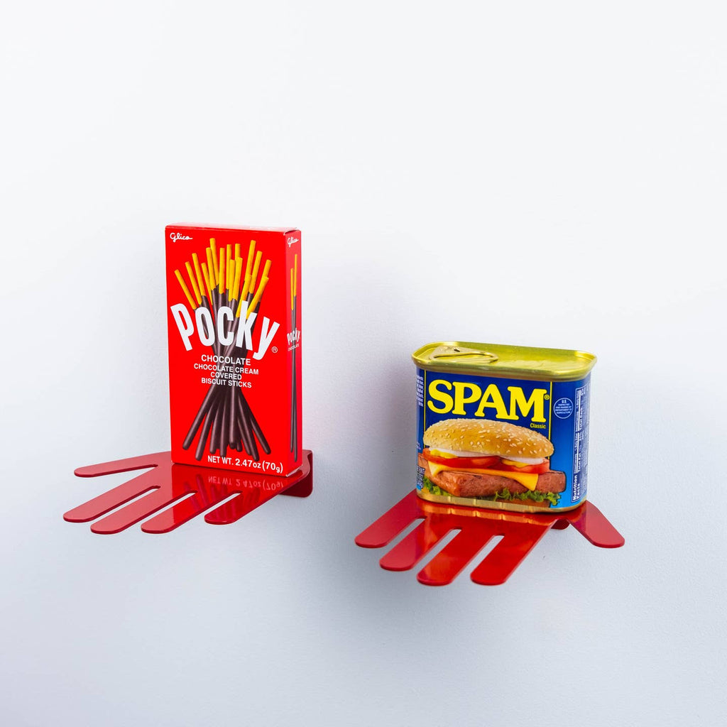 A pair of shelves designed using the actual measurements of Tadashi’s hands