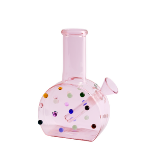 This piece is made from thick, durable borosilicate glass, with each dot carefully fired on by hand, so each bong is unique.