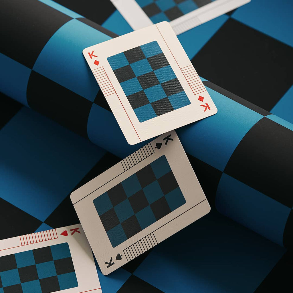 Originally released in 1952, The Little Toy was designed to inspire creative construction through a series of colorful panels, wireframes and connectors. For playing cards, the components were used to create a minimal numbering system where the small connectors act as edge markings for quick reference.