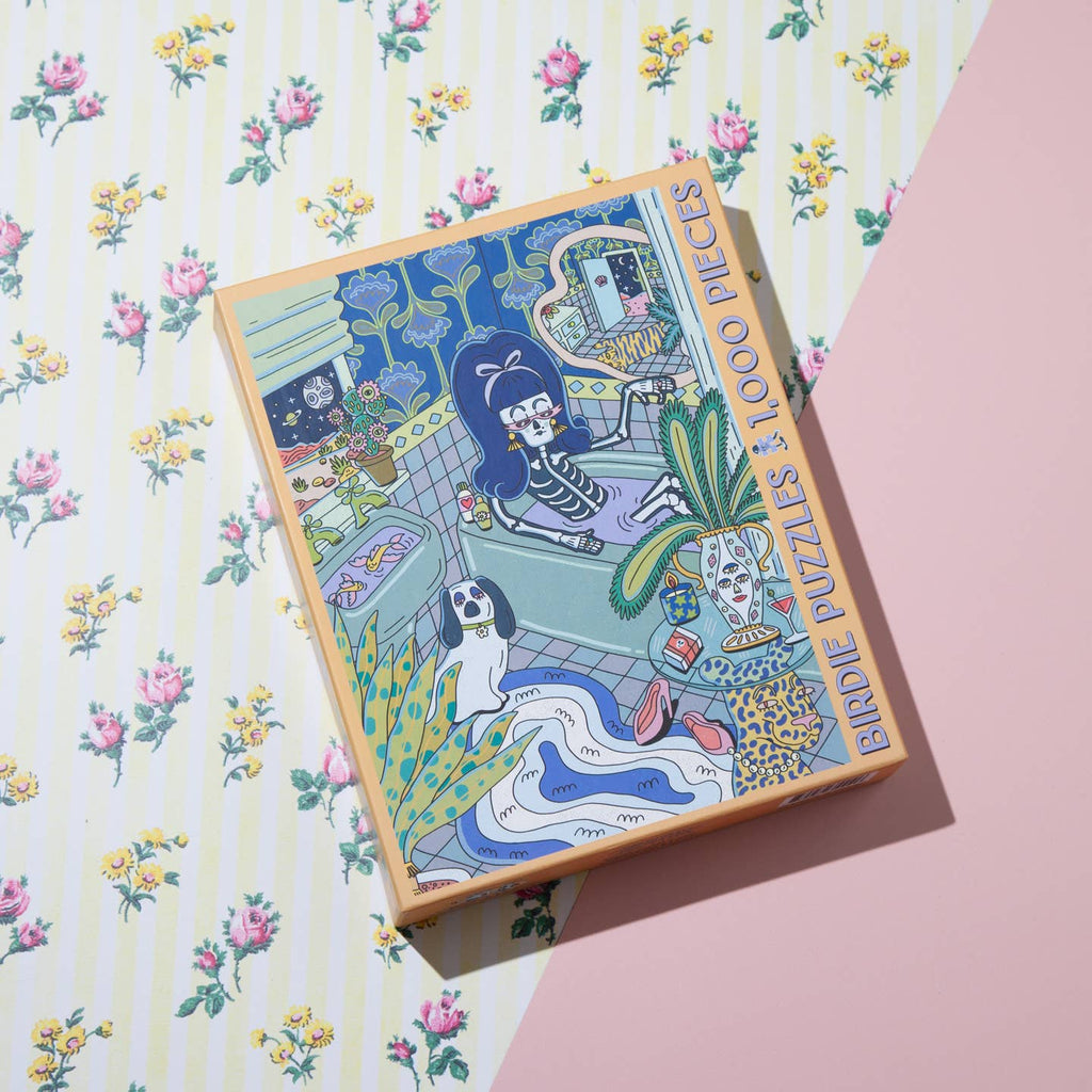 Truly epic vibes. It's self care, it's nostalgic, it's spooky-ish, it's absolutely lovely. Artist Emily M. Reay's art creates unique mood-scapes in the most unusual imagery. We're in love! One of our best selling puzzles and a delight to build.