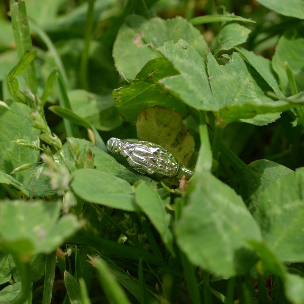 The iconic Ouroboros, depicted as a serpent consuming its own tail, is a potent symbol encapsulating the perpetual cycle of life, death, and rebirth, while also symbolizing the interconnectedness of all things. Handcrafted in sterling silver.