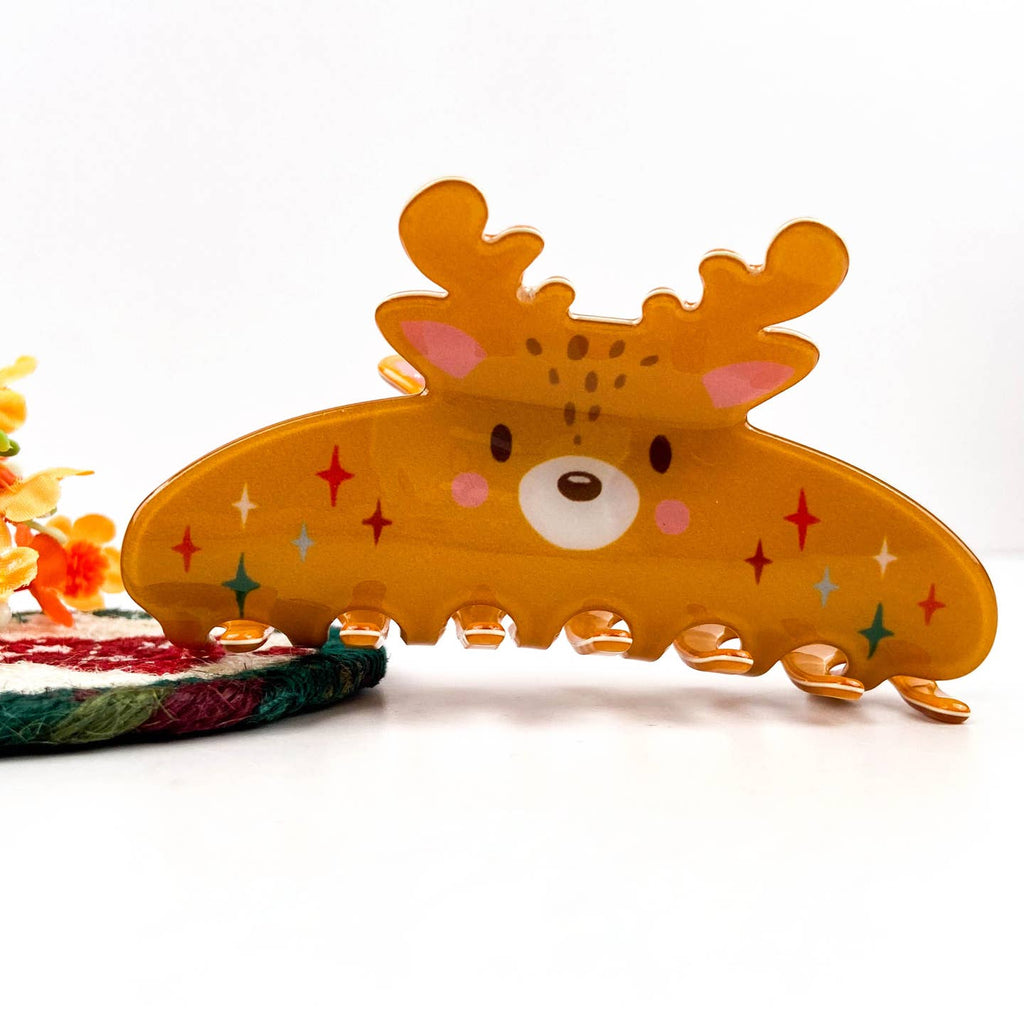 Celebrate the joy of the holidays with this charming Christmas hair claw featuring a reindeer and crescent moon print. The festive design captures the warmth and wonder of winter nights, making it a perfect accessory for the holiday season.