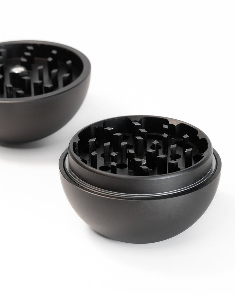 The Orb Grinder is a study in simplicity—an elegant sphere that fits perfectly in the palm and quietly elevates your ritual. Crafted from precision-machined aluminum with a smooth matte anodized finish, Orb hides razor-sharp teeth under its magnetic hood. The 4-piece assembly reveals a catch chamber with removable tray. The Orb ships with two custom tools and carry pouch.