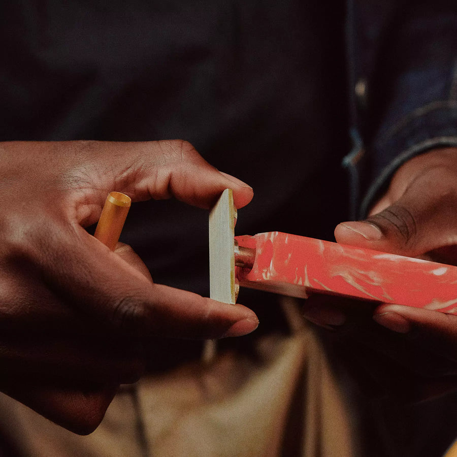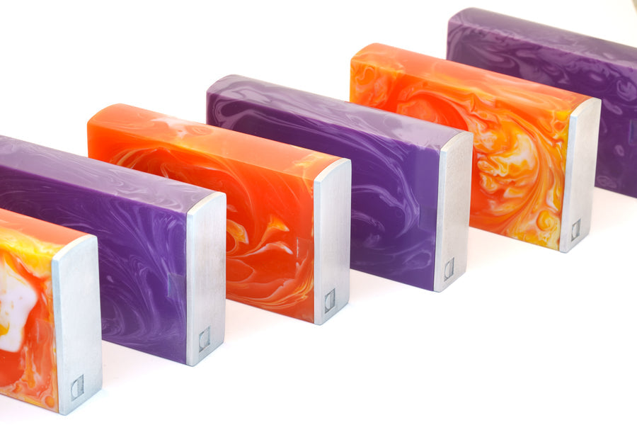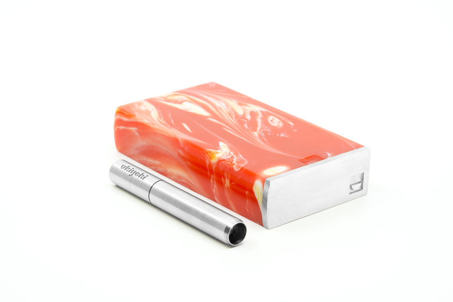 Add a little color to your smoke game with the Ukiyohi M1 "Chroma" Titanium Edition. Each custom-crafted resin box comes in choice of color, with no two ever being the same. The molded resin manufacturing creates random, amorphic patterns and swirls that, combined with a degree of translucency, create a decidedly luxe look and feel.