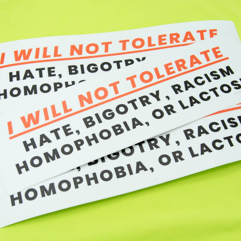 I Will Not Tolerate 10" Bumper Sticker