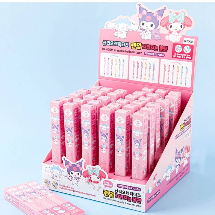 This time, it's an erasable ballpoint pen! Picking a box gives you more fun because you don't know what designs are hidden. It comes with 18 cute Sanrio illustrations on a colorful pastel-toned body.