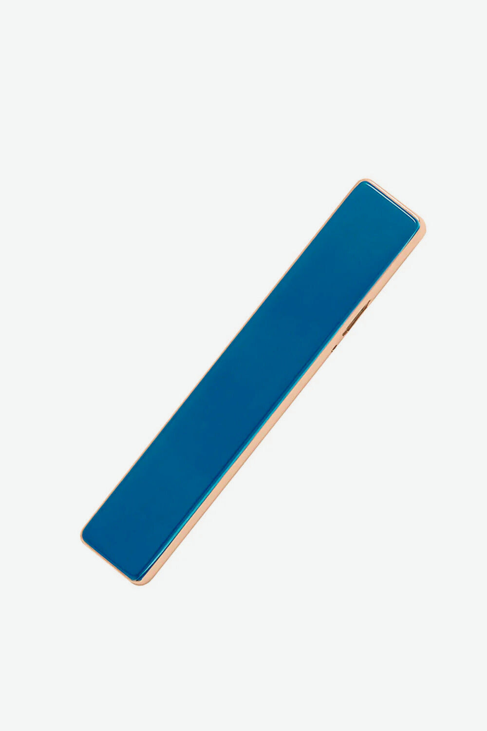 Light rolled smokes without a flame. This compact, rechargeable, fuel-free lighter uses the same heated-coil mechanism as the car lighters of yore — simply slide the top panel down to reveal, and instantly heat up, the electric coil. Available in blue, black, iridescent, or warm gold (somewhere between gold and rose gold).