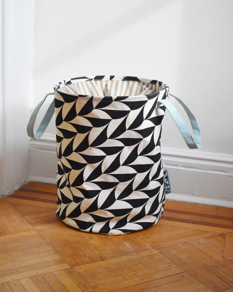 Canvas with PE coated interior. Cotton topper with drawstring closure. Holds up to 88L.