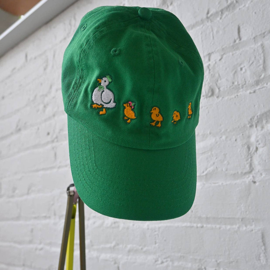 The Quacky family is here in hat form! Features mom Duck and six little ducklings embroidered on the front and side of this low profile cap.