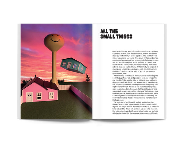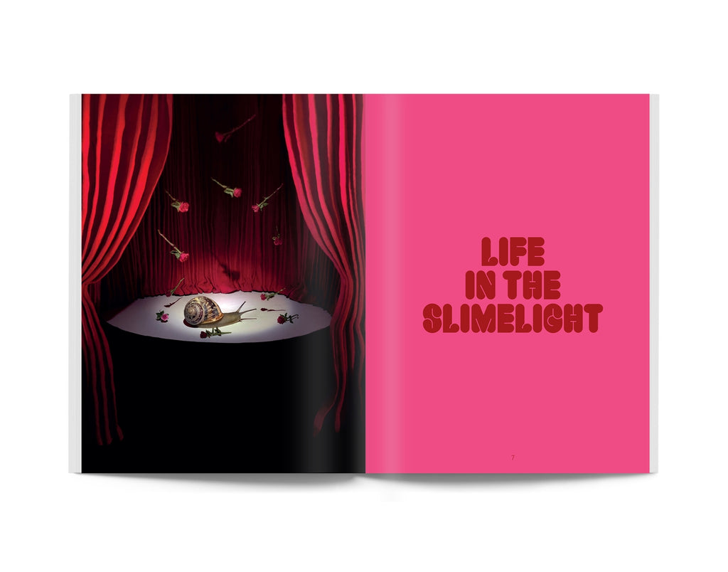 Snail World: Life in the Slimelight is a coffee table book featuring a collection of absorbing snapshots from an alternate universe where snails drink bubble tea at the mall, hit tiny bongs, and get beamed up into flying saucers. Real snails and frogs bring to life miniature scenes meticulously created by artists Aleia Murawski and Sam Copeland, inspired by moody, cinematic moments and nostalgic Americana. These dreamlike and often hilarious images evoke the melodrama of daily life: a snail alone in an apartment with one last box to move; two snails getting slime all over grandma's plastic-covered armchairs; a frog doing karaoke in a heart-shaped hot tub. With hidden details to discover each time you flip through the pages, Snail World is a quirky celebration of the (very) little things in life.