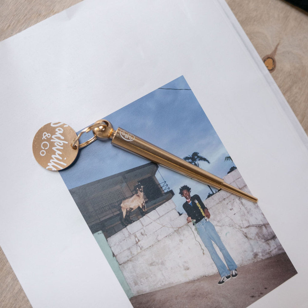 Elevate your rolling game with the Sackville & Co. Joint Rolling, Pre-Roll packing Poker Tool. The essential accessory for any discerning smoker, the soft brushed aluminum light-weight tool is topped with a keyring and Sackville's signature 'Moon is High' icon.